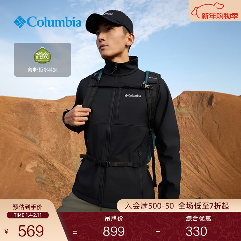 旗舰店Columbia哥伦比亚户外男子拒水徒步内里抓绒保暖软壳衣外套WE6044 007 黑色 L (180/100A)