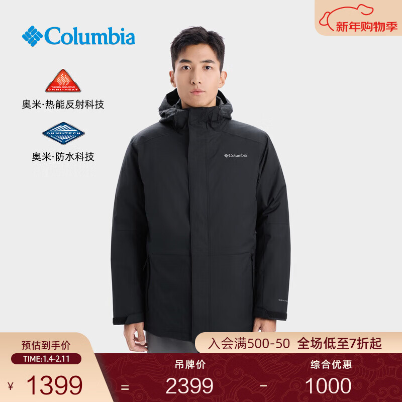 旗舰店Columbia哥伦比亚户外25秋冬新品男金点700蓬鹅绒三合一防水冲锋衣XE0098 010 黑色 L (180/100A)
