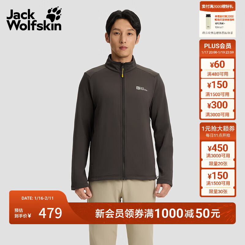 旗舰店jackWolfskin狼爪25秋冬新TRAILBLAZE男款情侣抑味户外运动抓绒夹克外套A65372 泥棕色/D0108 M
