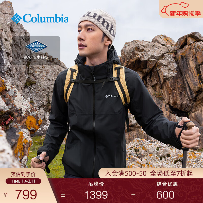 旗舰店Columbia蒋奇明同款哥伦比亚户外情侣防水冲锋衣徒步外套XE3734 010男女同款 黑色 M(175/96A)