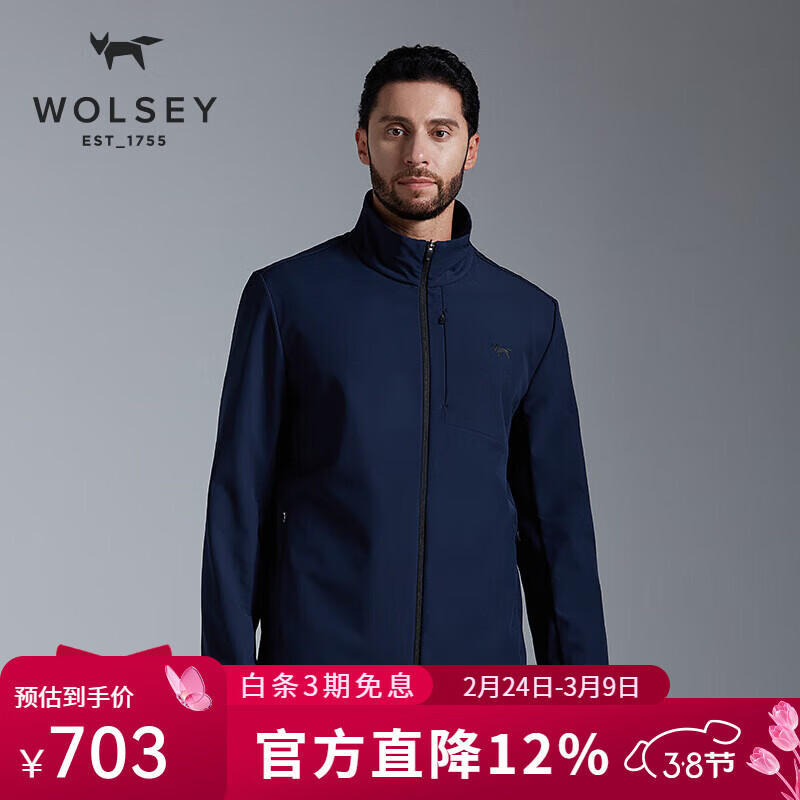 旗舰店WOLSEY尼维斯户外软壳衣男士防风加绒立领外套可做冲锋衣内胆使用 海军蓝 L 175