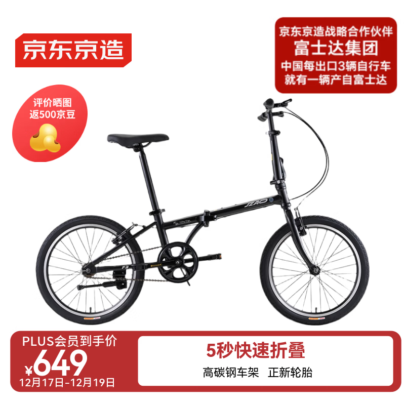旗舰店京东京造 F3折叠自行车单速20英寸成年人学生男女通勤休闲单车