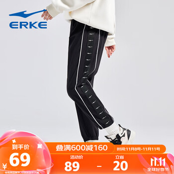 自营鸿星尔克滑板系列丨休闲运动裤百搭九分裤跑步长裤 正黑 L