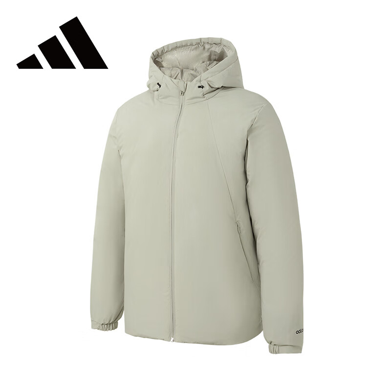 600蓬拒水防风温暖宽松中长款鸭绒连帽羽绒服男adidas阿迪达斯