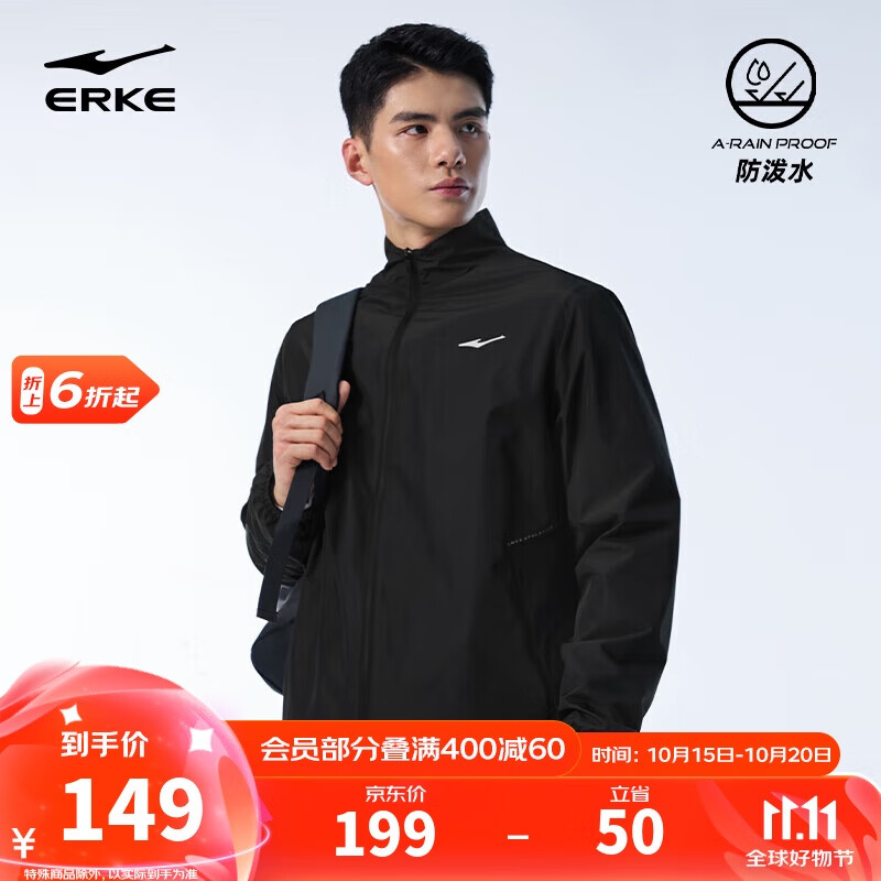 自营鸿星尔克防泼水夹克外套男秋季开衫束口防风骑行服跑步衫上衣