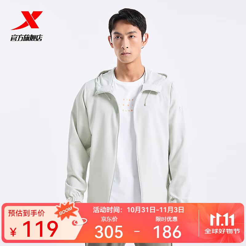旗舰店特步门店同款风衣男新款百搭运动纯色连帽男开衫外套上衣976329140118 尘灰色 L