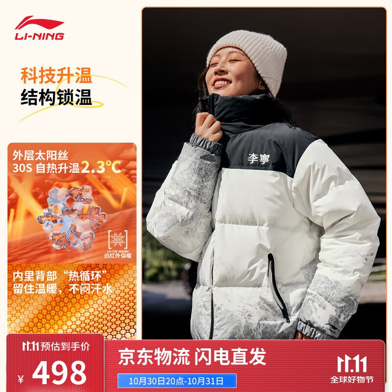 自营李宁火锅羽绒男女同款防泼水抗静电科技宽松鸭绒短羽绒服AYMV433