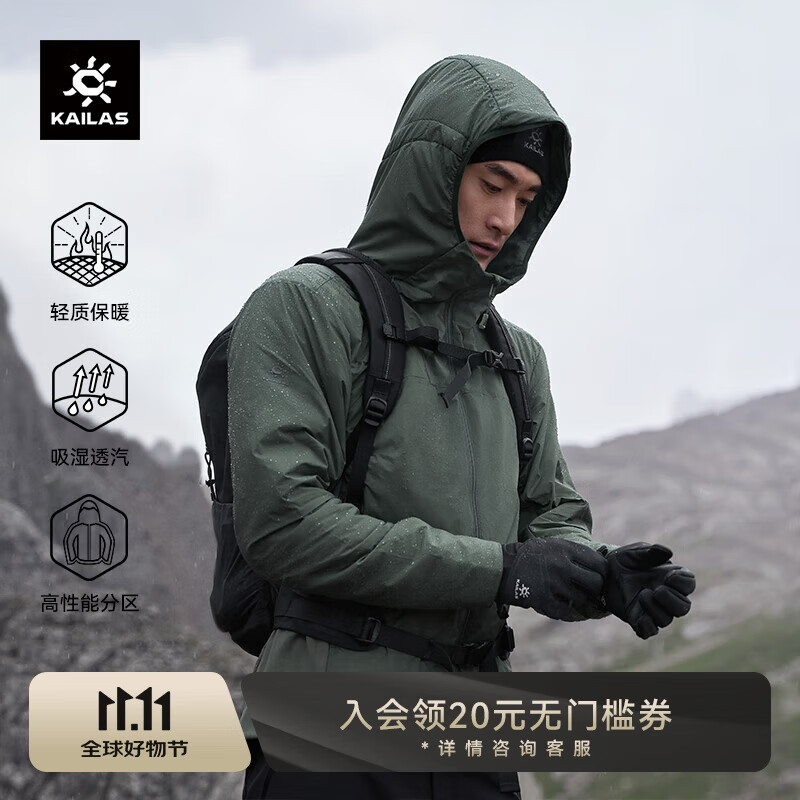 自营KAILAS凯乐石男款巴松气凝胶棉服动态控温保暖户外防风连帽夹克秋冬