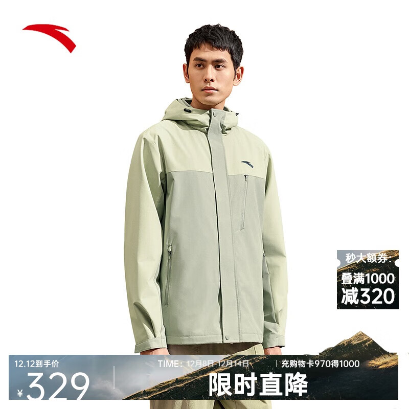 自营安踏三合一防泼水外套丨防风防暴雨拼色可拆卸硬壳户外男风衣
