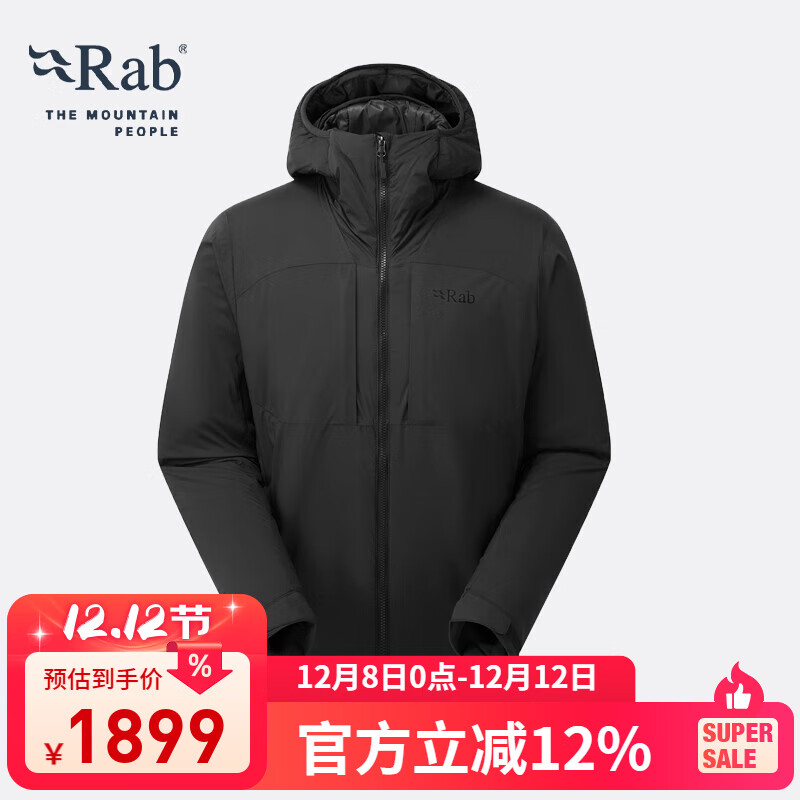 旗舰店RabRAB睿坡Xenair Alpine男士防泼水透气棉衣户外运动棉服夹克QIP-09 黑/黑色-BKB M