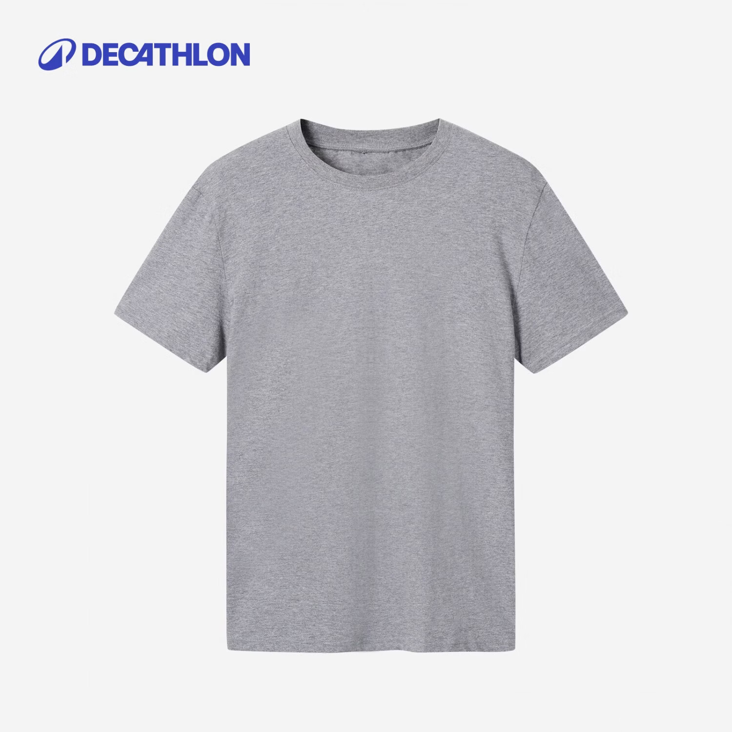 自营迪卡侬运动纯棉t恤男纯色圆领半袖打底跑步健身短袖-4639700灰色L