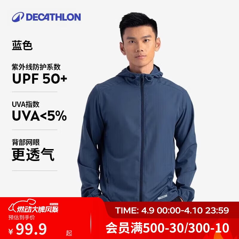 自营迪卡侬运动外套男户外跑步训练防风衣蓝色L4826159