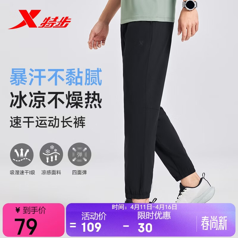 自营特步运动长裤男子梭织运动裤夏季透气冰丝速干户外训练百搭