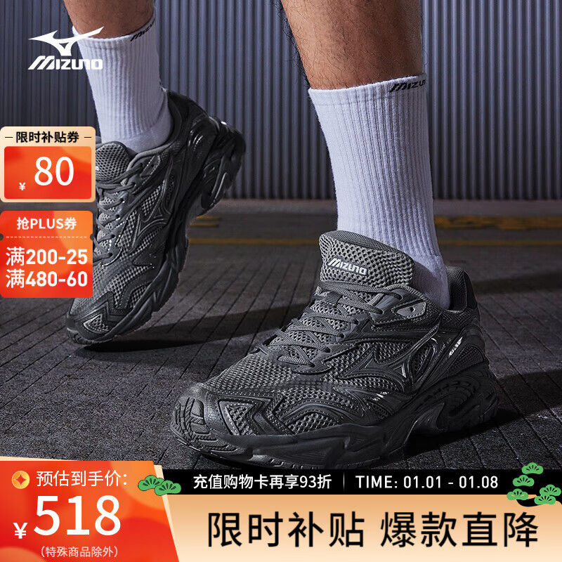 自营美津浓(MIZUNO)2025新款缓震回弹透气耐磨竞训运动跑步鞋WAVE RC 01/黑色 41