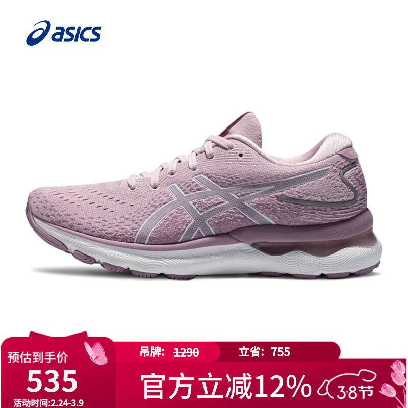 自营亚瑟士ASICS女鞋跑鞋缓震舒适透气运动鞋 GEL-NIMBUS 24 粉紫色 35.5