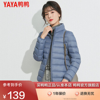 旗舰店鸭鸭(YAYA)2021年轻薄羽绒服女短款立领薄款秋外套K 雾蓝色 2XL