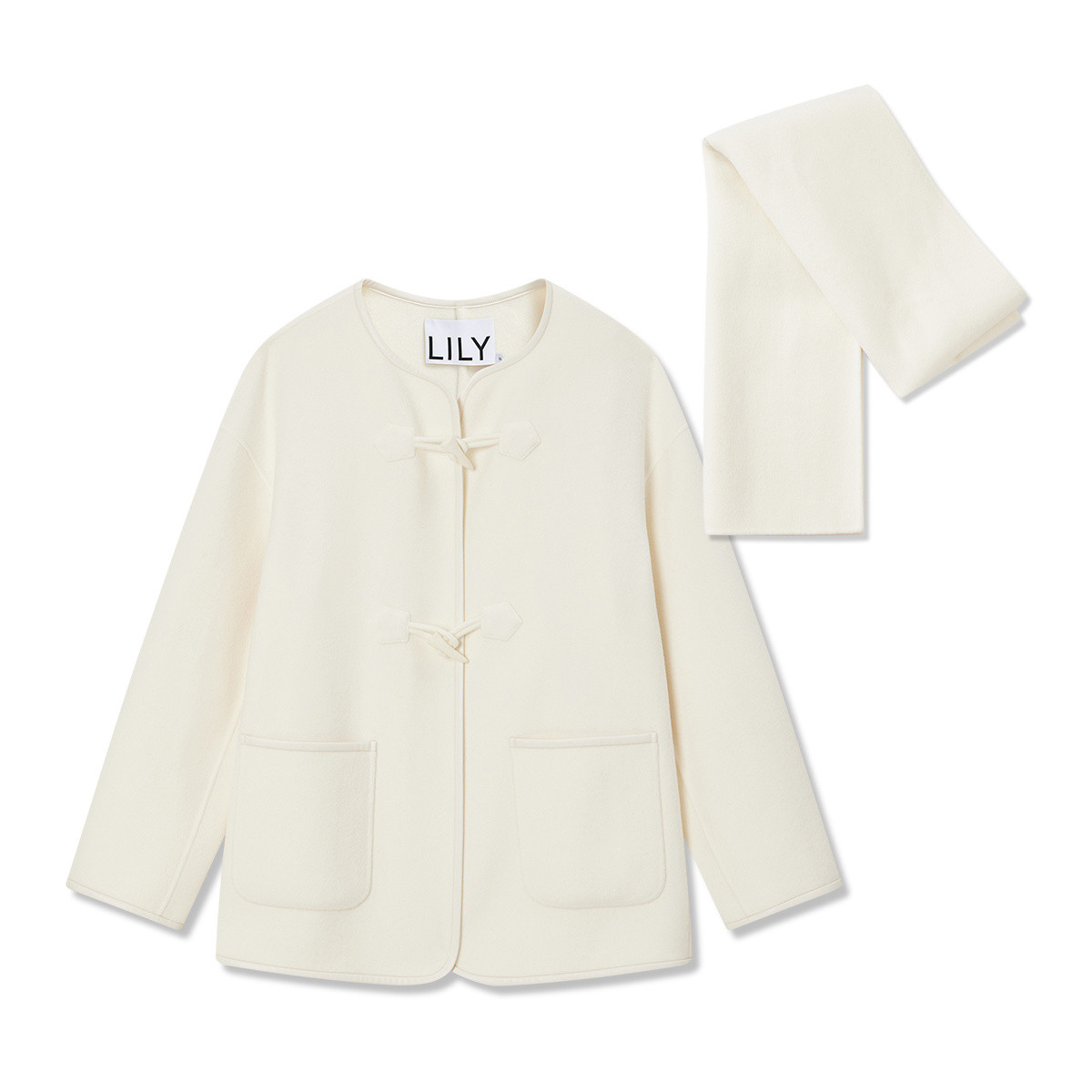 LILY 【商场同款】气质通勤全羊毛围巾毛呢外套大衣