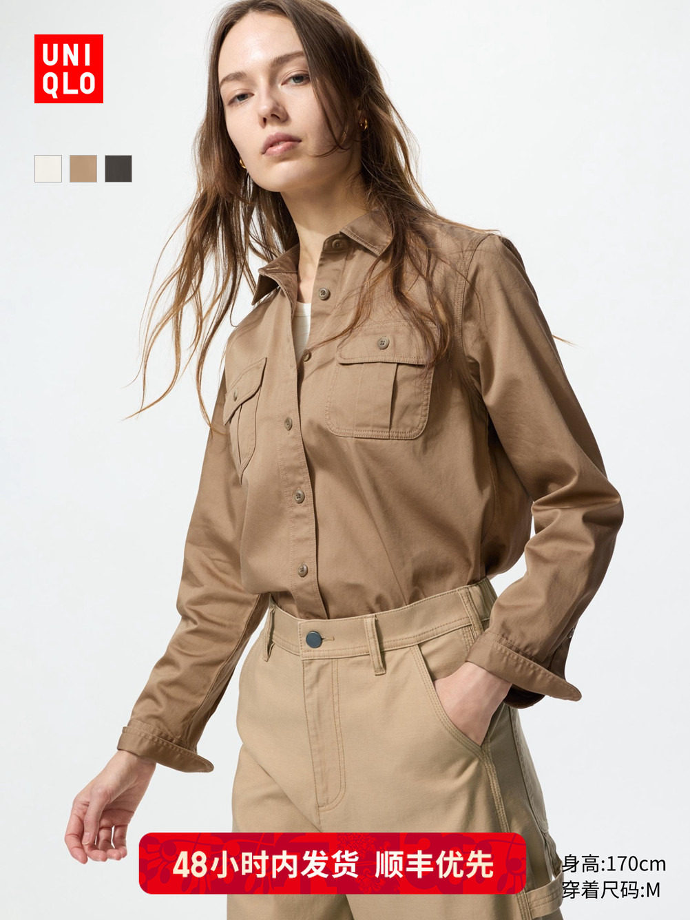 旗舰店优先顺丰优衣库女装全棉工装衬衫/长袖衬衣外套479579