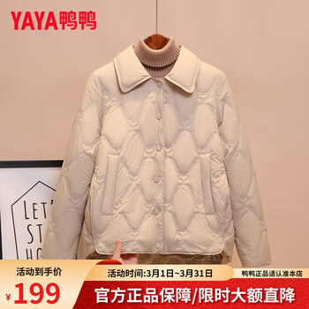 旗舰店鸭鸭(YAYA)轻薄羽绒服女士短款2024年冬季新款百搭时尚休闲小个子外套 浅米白 M