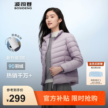 旗舰店波司登(BOSIDENG)25年新款短款轻薄羽绒服女90绒户外野营登山旅游外套B250131006 数字薰衣草6211-25-浅春色 L 170/92A