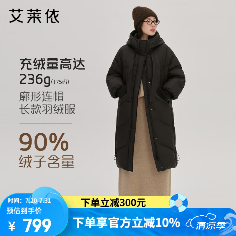 旗舰店艾莱依(ERAL)羽绒服女士温暖连帽长款羽绒服女设计感旷野美拉德风 炭黑 M 160【建议120-140斤】