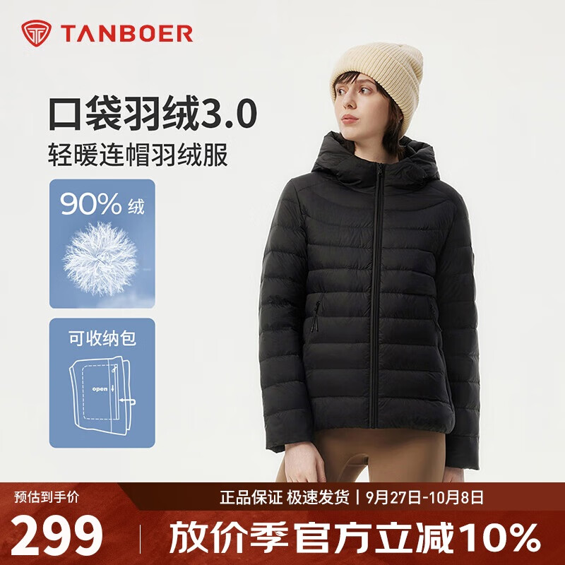 自营坦博尔轻薄羽绒服女短款连帽百搭休闲秋冬女士外套 黑色 L(170)