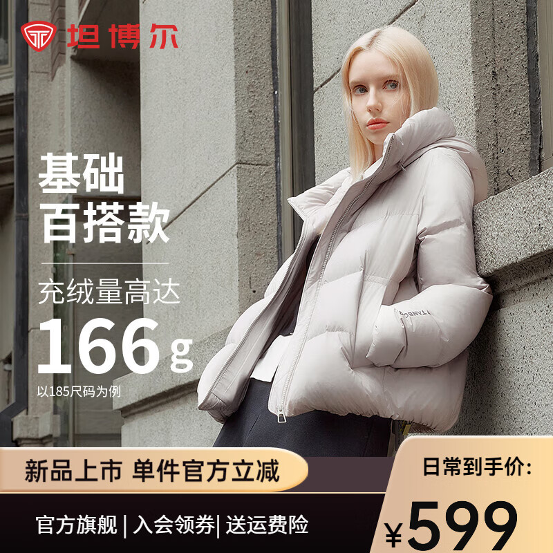 旗舰店坦博尔秋冬新款羽绒服女短款面包服连帽简约外套TBF330332J 玫瑰灰 M (165)