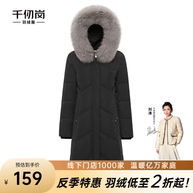 旗舰店千仞岗秋冬季鸭绒羽绒服中长款大毛领保暖外套百搭休闲送妈妈气质防寒服 魔力黑 S (160)