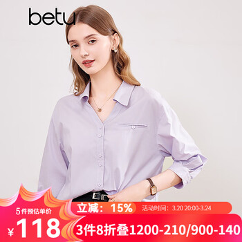 旗舰店百图betu女装2024春夏新款衬衫法式翻领口袋设计时髦优雅衬衫2403T36 紫色 L