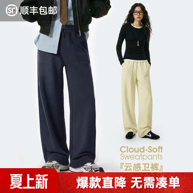 马登莫代尔云感空气层卫裤女老钱风直筒阔腿裤针织休闲长裤子女士春 奶油黄 M (100-115斤)