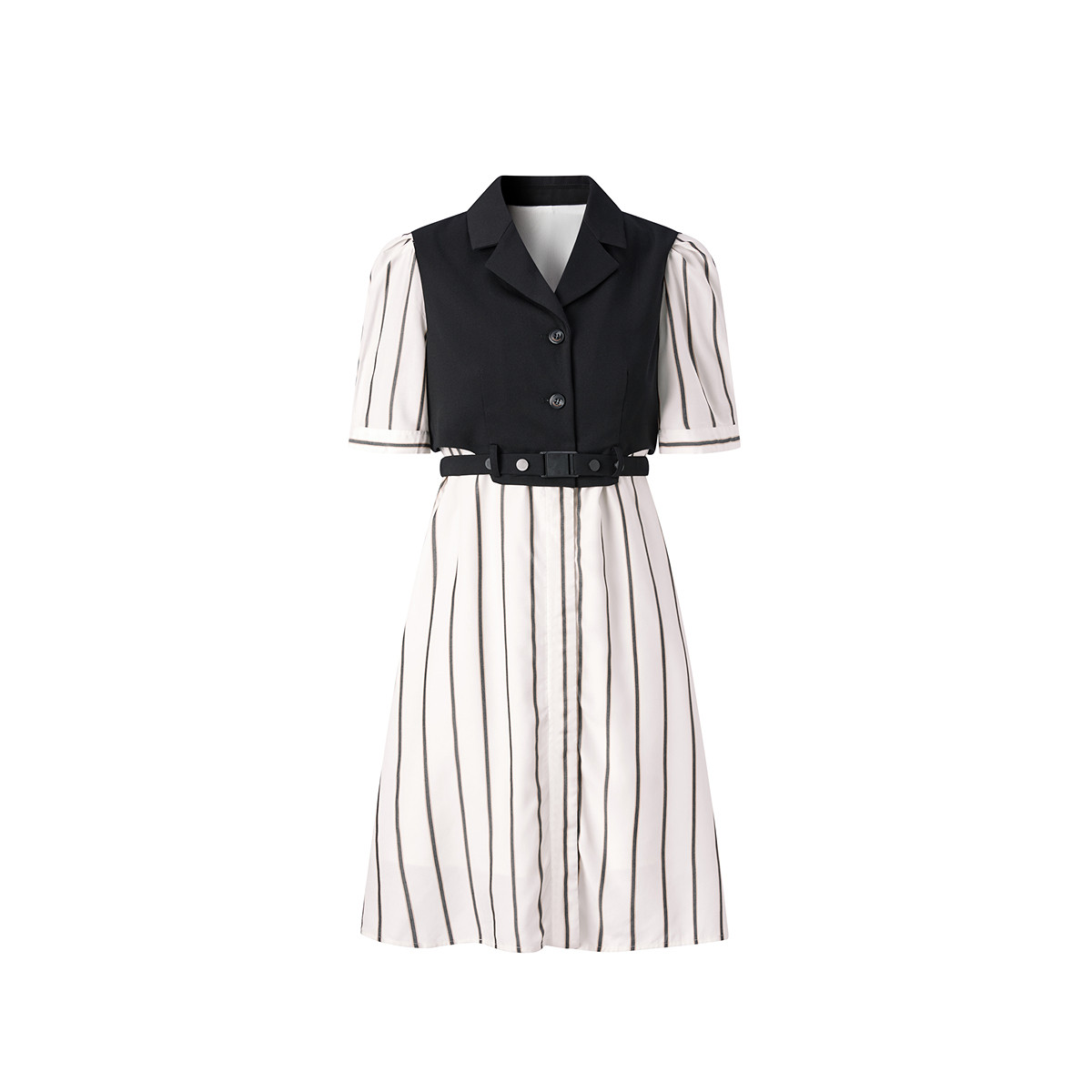 太平鸟 春秋时尚拼接条纹收腰衬衫式连衣裙女职场百搭风