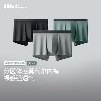 旗舰店蕉下(beneunder)莫代尔男士内裤无痕底裆抗菌平角裤25新品短裤三条装SF046情人节 新款-月凝灰+漫暮黑+灰榄绿 3条 M