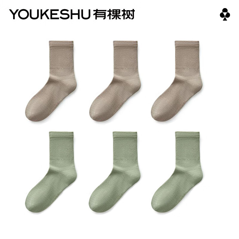 旗舰店有棵树【2件起购】袜子女士中筒袜抑菌防臭吸汗透气秋冬季基础百搭长袜 卡其麻+卡其麻+卡其麻+松绿+松绿+松绿 6双 均码