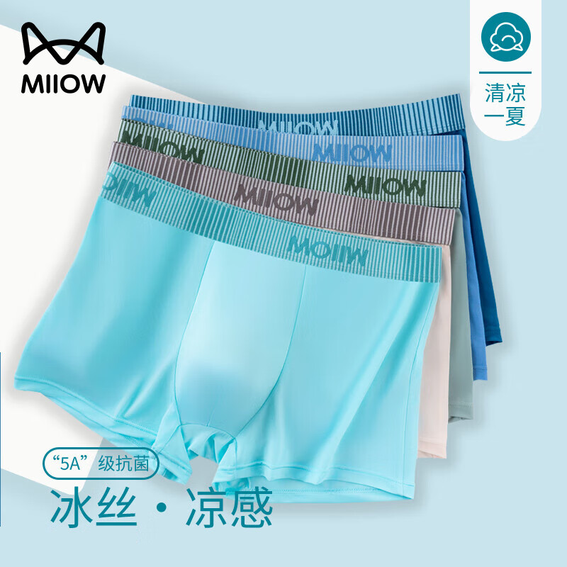 旗舰店猫人(MiiOW)男士内裤男冰丝5A抗菌内档短裤头透气大码裤衩送男友舒适裤头 深灰+宝蓝+浅兰 3条 2XL