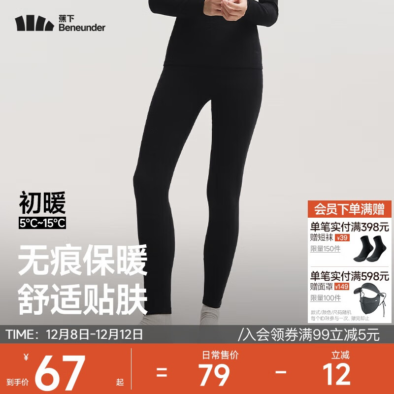 自营蕉下(beneunder)保暖裤女士秋裤秋冬加绒抗寒打底裤无痕不勒抗静电