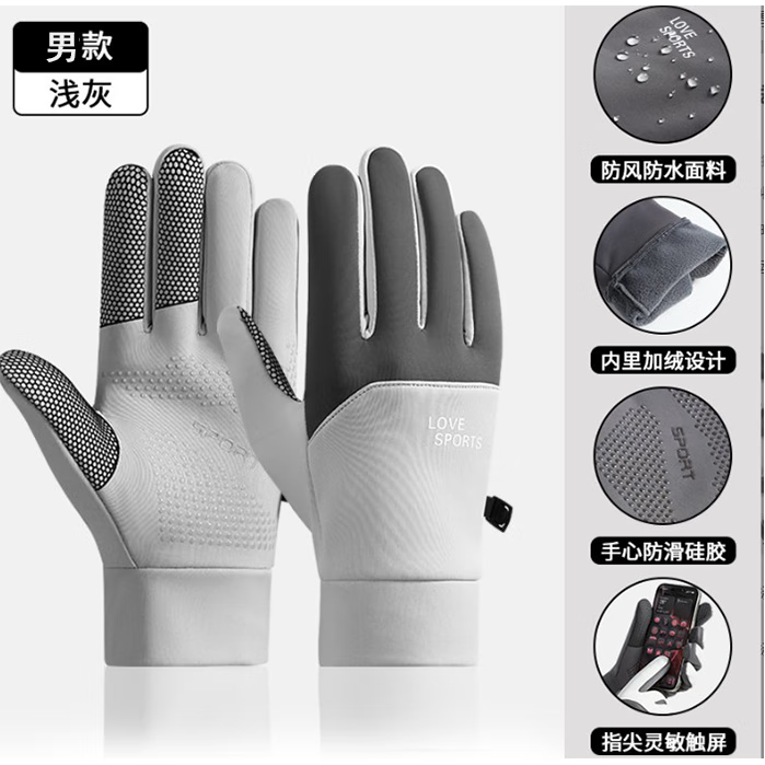 卫墨墨手套男冬季骑行保暖加绒加厚防水运动骑车女冬天防风御寒触屏手套 【浅灰+深灰】-男款1双 无规格