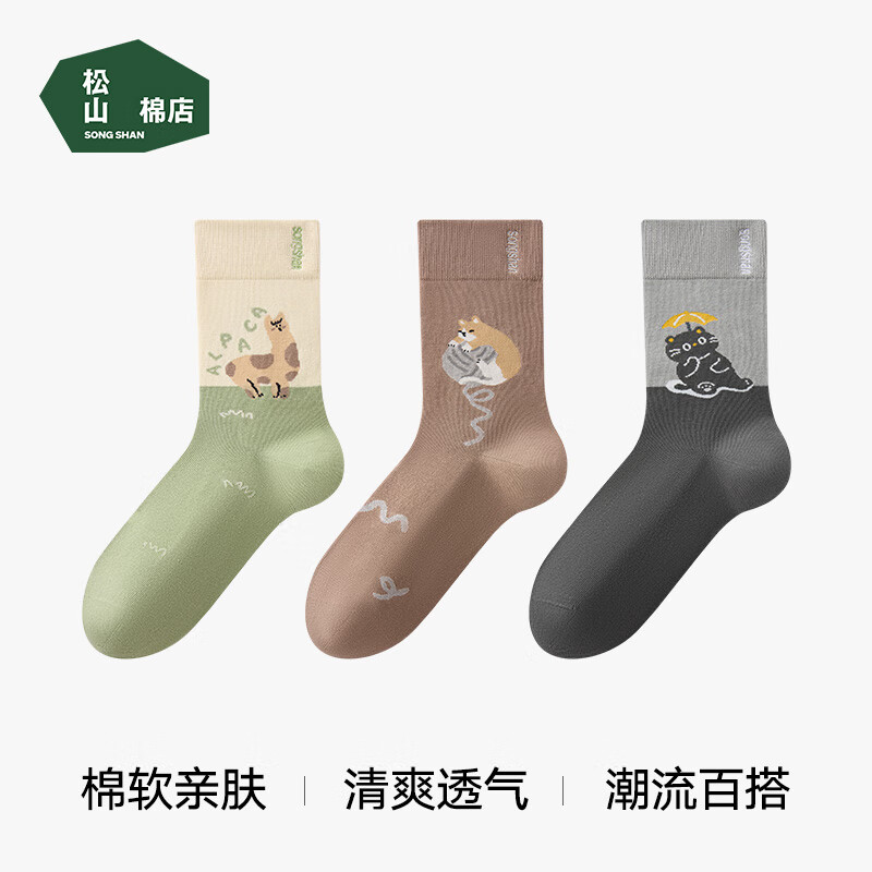 旗舰店松山棉店雅趣中筒袜子男女棉柔个性透气舒适潮袜子不撞款时尚礼盒3双装 HT550-3001546-D 3双 均码 (推荐35-42码)
