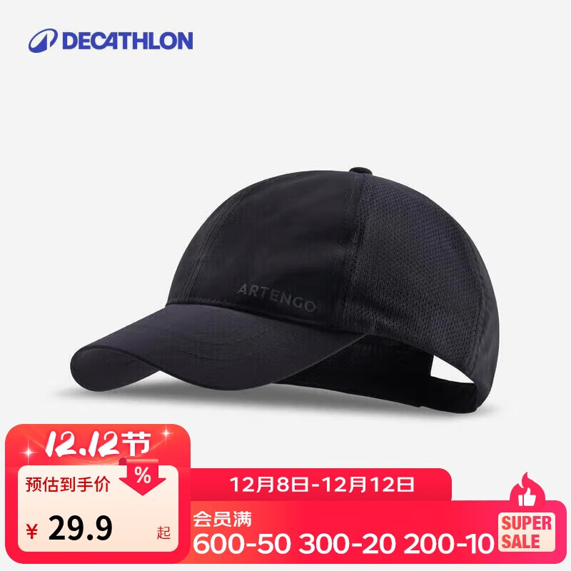 自营迪卡侬帽子男女鸭舌帽防帽黑色_经典款TC100(58cm可调节)均码4237279