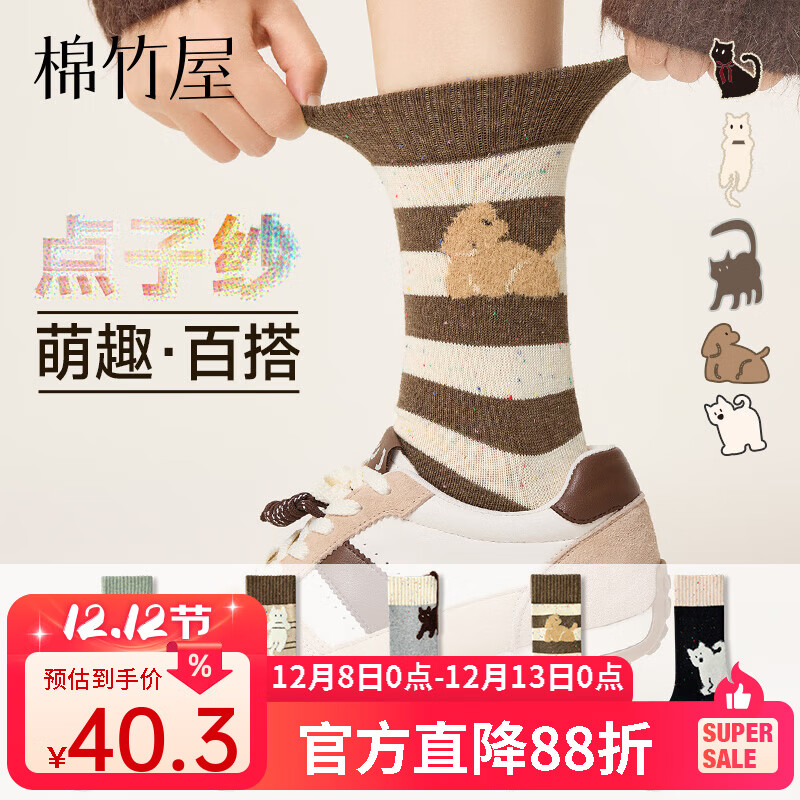 旗舰店棉竹屋25年新款点子纱条纹袜子女款可爱中筒袜10A抗菌秋冬防臭棉袜 组合一(奶白+卡其+浅灰+深咖+黑色) 均码