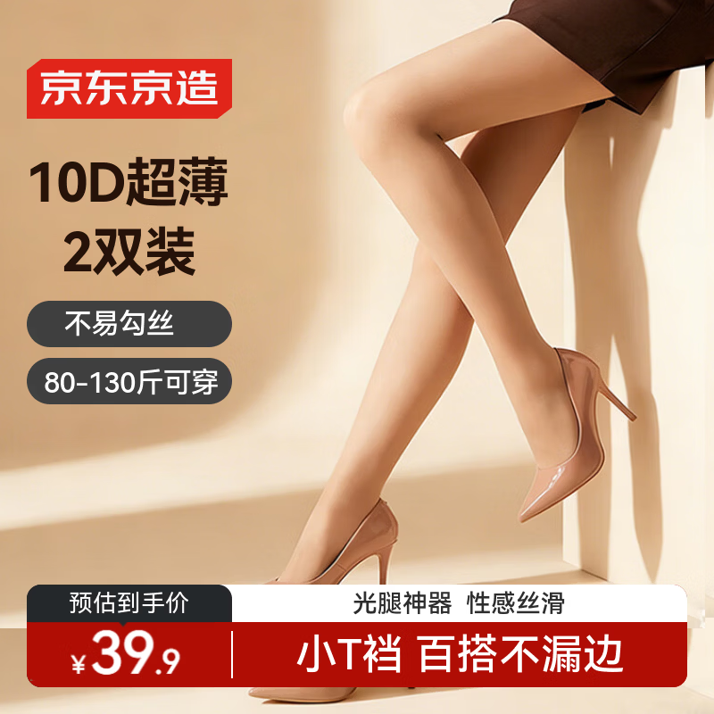 自营京东京造丝袜超薄款性感防勾丝加长裆连裤袜春夏款光腿神器裸感肤色2双装