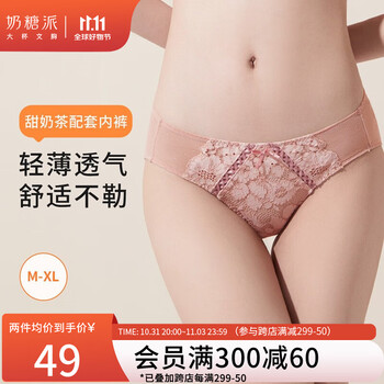 旗舰店奶糖派性感配套仪式感甜奶茶内裤纯棉舒适轻薄蕾丝三角裤女士内裤 白桃乌龙 L