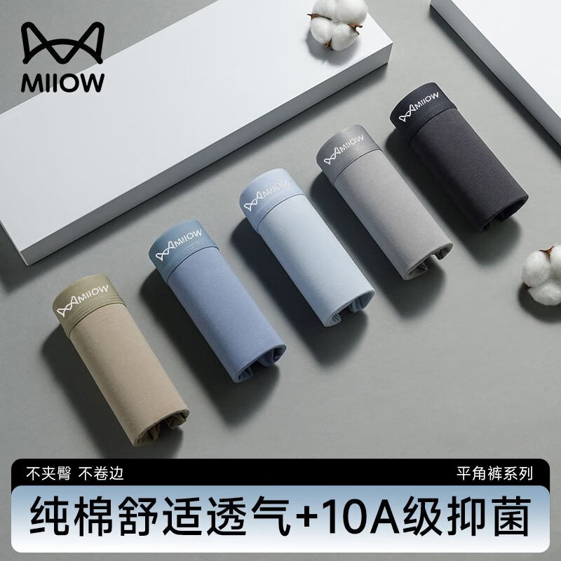 猫人内裤男轻薄抗菌裆春夏凉感透气冰丝平角裤男生四角裤衩 车缝:深灰/浅灰/宝蓝/浅蓝 4条 L (建议体重90-100斤)