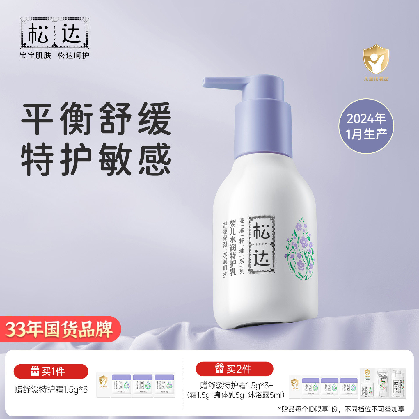 松达婴儿舒缓特护乳水润保湿面霜宝宝秋冬儿童身体润肤乳118g-bb