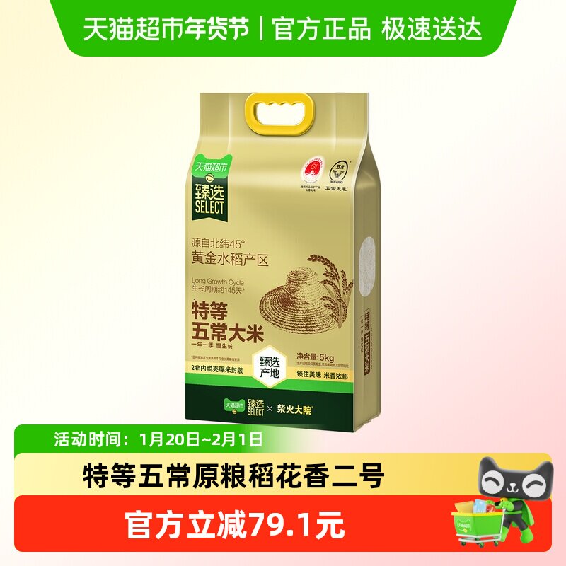 【臻选】柴火大院特等五常大米5kg原粮稻花香2号核心产区双层真空