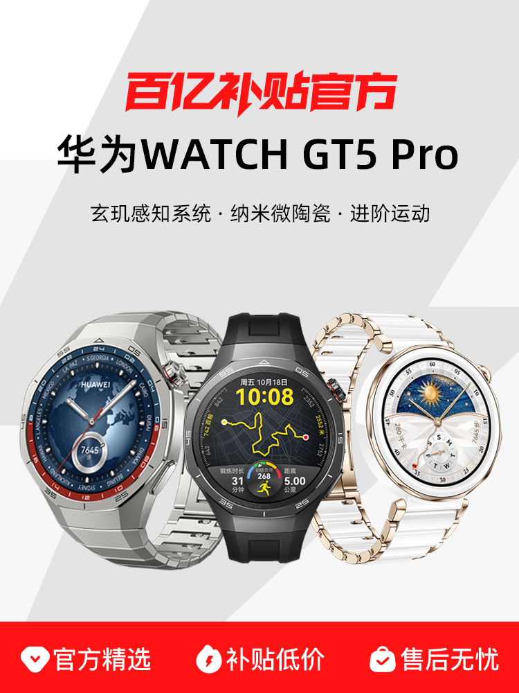 百亿补贴Huawei/华为WATCH GT 5 Pro华为手表智能手表纳米微晶陶瓷进阶运动情绪健康助手睡眠监测长续航蓝牙通话gt5