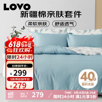 自营LOVO罗莱生活 全棉四件套纯棉床单被套枕套床上用品双人220*240cm