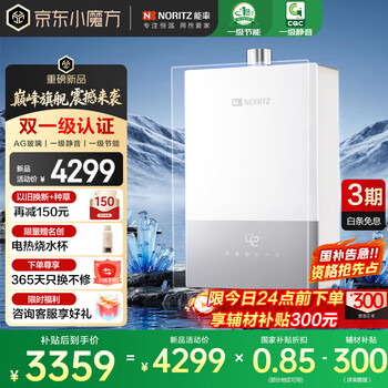 自营能率(NORITZ)【小云朵UP】16升燃气热水器 天然气【家电国家补贴15%】AG玻璃 一级静音 节能水伺服 16EX33AFEX