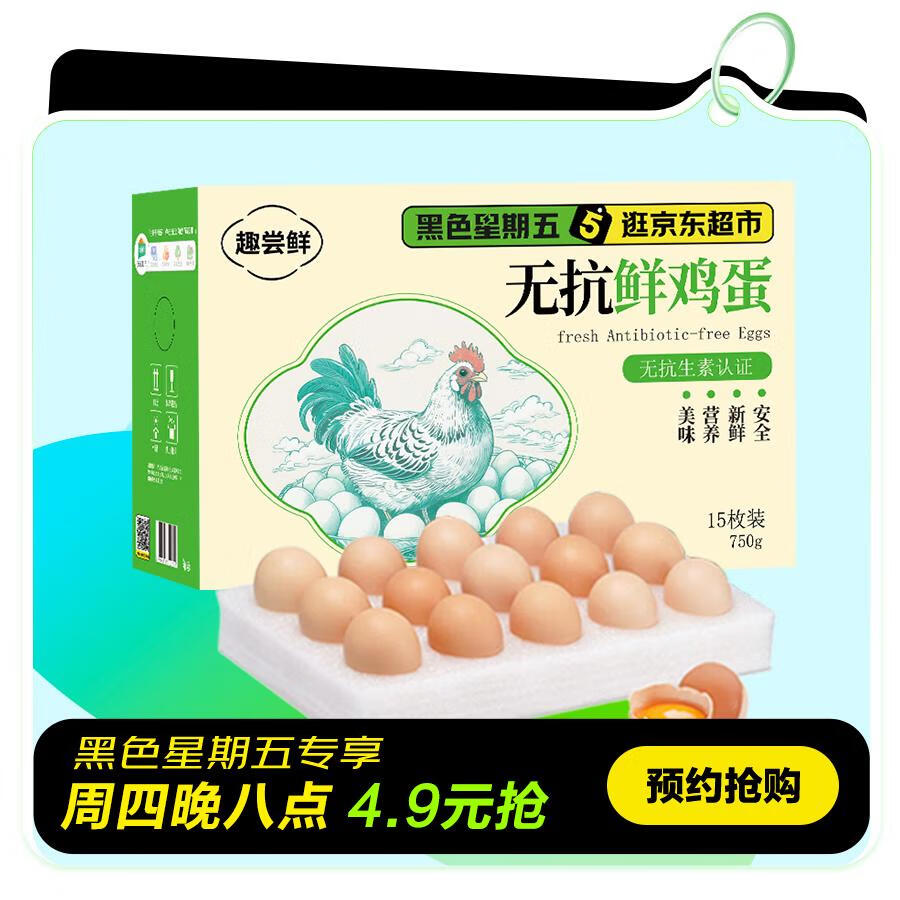趣尝鲜无抗鲜鸡蛋15枚/盒 净重750g 源头直发