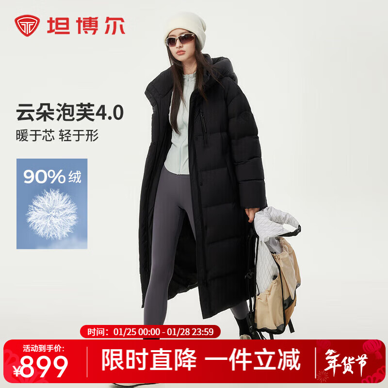 旗舰店坦博尔冬季泡芙羽绒服女长款连帽加厚面包服秋冬保暖外套TBF530832D 黑色 M (165)
