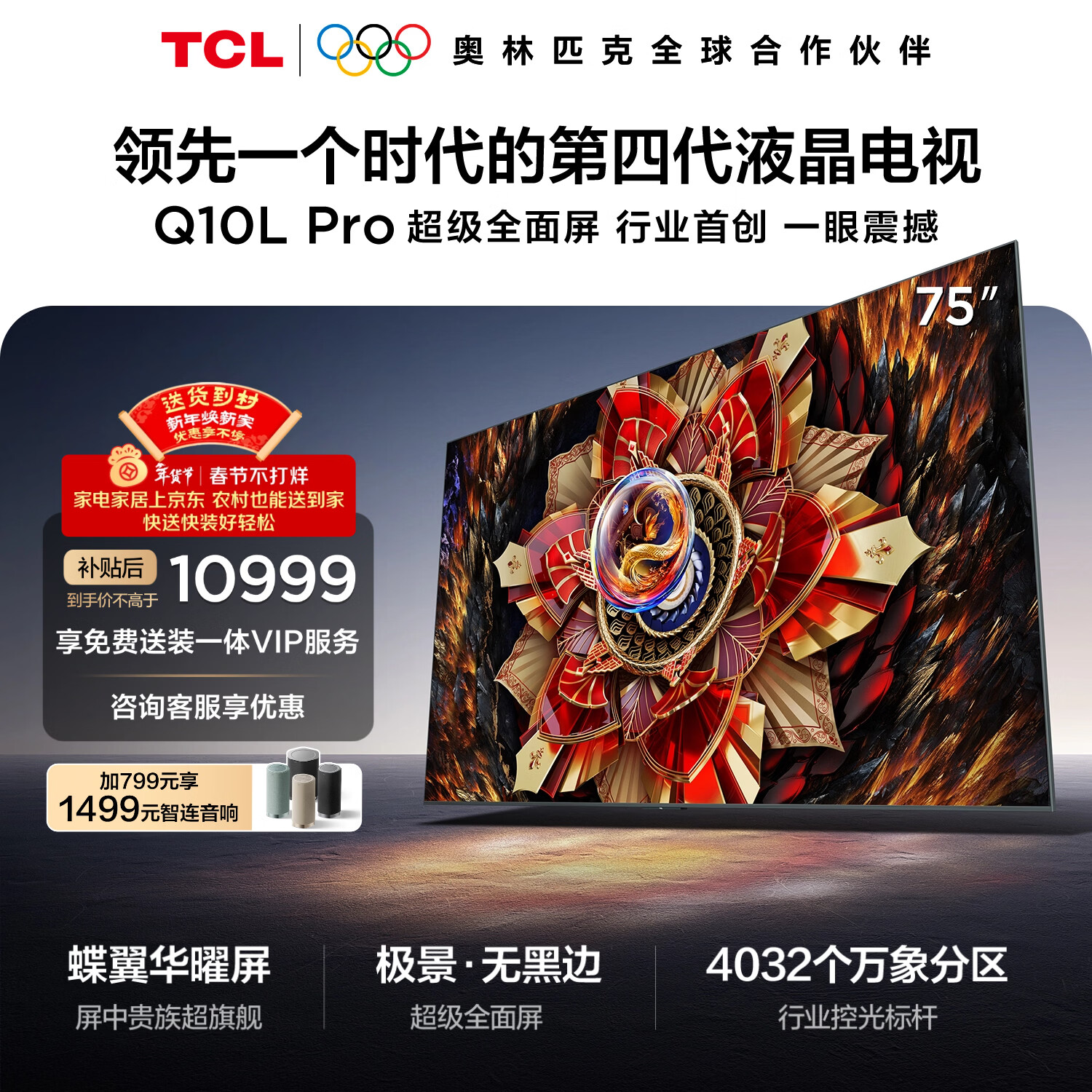 自营TCL电视 75Q10L Pro 75英寸 极景QD-Mini LED 蝶翼华曜屏 万象分区 绚彩XDR 国家补贴 护眼